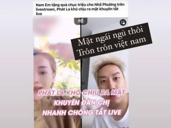 Trang 1Phát La lên tiếng sau màn hối thúc Nhã Phương tắt livestream khi Nam Em xuất hiện 'gây rối'