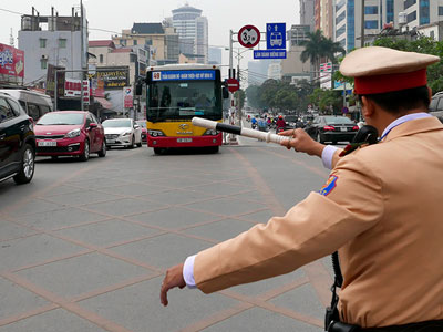 Ô tô, xe máy thậm chí cả xe buýt lấn làn, đi vào đường buýt nhanh BRT đều bị CSGT nhắc nhở trong ngày làm việc đầu tiên của năm 2017.