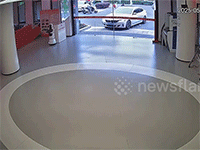 Một chiếc xe con bị mất kiểm soát đã lao vào cửa hàng lốp xe và đâm mạnh người đàn ông đang ngồi ở quầy tính tiền bên trong.