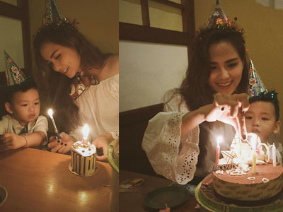 Diễm Hương đón sinh nhật bên con trai, ông xã không có mặt