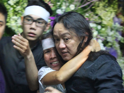 Hơn 23h tối 20/9, vừa bay từ Mỹ về TP HCM, nam ca sĩ đến ngay tang lễ của người bạn vừa qua đời, thắp hương và hát bên linh cữu anh.