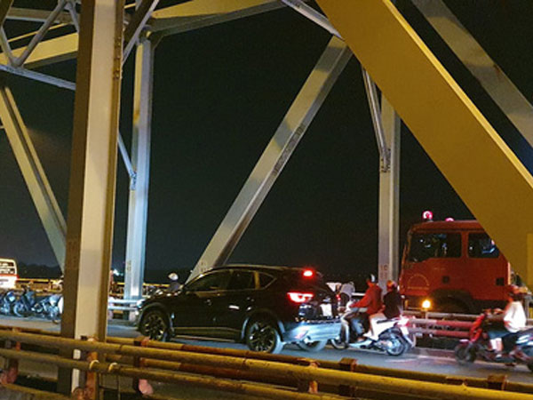 Một người phụ nữ đi lên cầu Chương Dương (Hà Nội) để lại balô, túi xách và điện thoại rồi vội nhảy xuống sông Hồng tự tử.