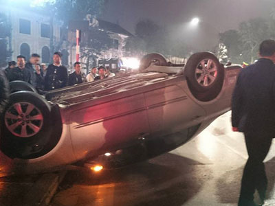 Vào khoảng 23 giờ 30 tối ngày 24/4, tại đoạn đường bên dưới Kim Mã (quận Ba Đình, Hà Nội) đã xảy ra một vụ va chạm giao thông khiến một ôtô lật nhào, hư hỏng nặng.