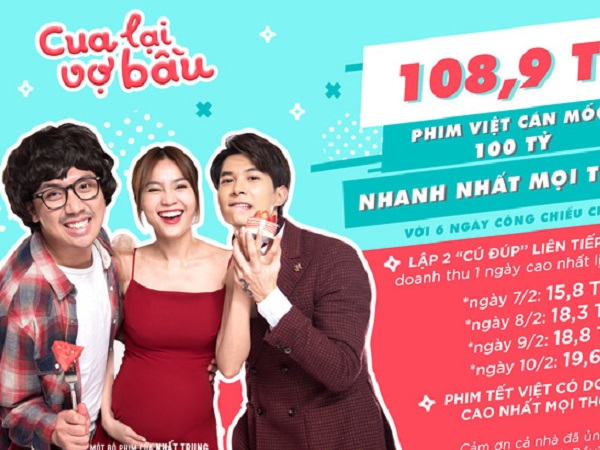Mặc những lùm xùm liên quan đến phim Trạng Quỳnh, Trấn Thành vừa giúp Cua lại vợ bầu cán mốc doanh thu kỷ lục, trở thành phim Việt đạt 100 tỷ nhanh nhất mọi thời đại.