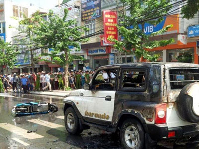 Xe taxi phát nổ kinh hoàng giữa thành phố Cẩm Phả làm 2 người chết