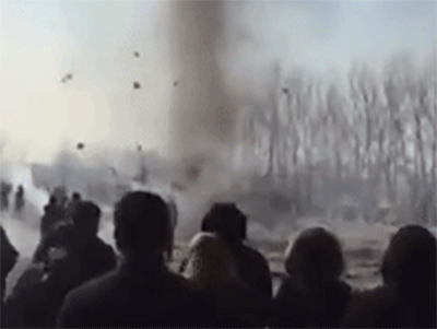 Cơn lốc xoáy kinh hoàng càn quét qua một tỉnh ở Trung Quốc đã cuốn phăng những vật cản trên đường đi, gây thiệt hại nặng nề.