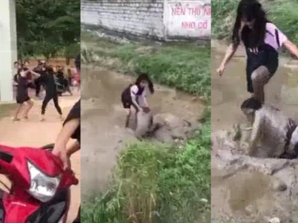 2 nữ sinh bị một nhóm nữ sinh khác dùng tay, chân, mũ bảo hiểm đánh liên tiếp vào đầu, mặt, khắp người. Thậm chí, 1 trong 2 nữ sinh còn bị lột đồ.