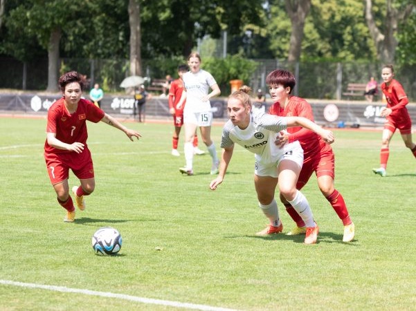 Chiều ngày 10/6 (giờ Đức), ĐT nữ Việt Nam có trận đấu giao hữu đầu tiên trong chuyến tập huấn tại Đức để chuẩn bị cho VCK bóng đá nữ thế giới 2023, gặp CLB Eintracht Frankfurt. Chung cuộc, các học trò của HLV Mai Đức Chung giành chiến thắng 2-1 trước các nữ cầu thủ đến từ CLB Eintracht Frankfurt.