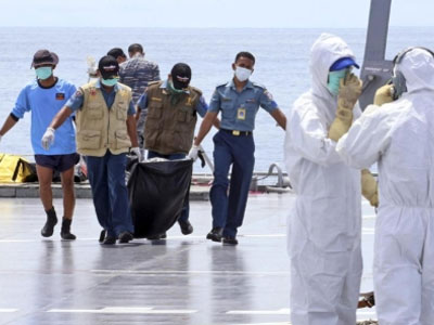 Trong lần đầu tiên vào được bên trong phần thân máy bay của hãng AirAsia, các thợ lặn người Indonesia ngày 23/1 đã vớt được 6 thi thể.