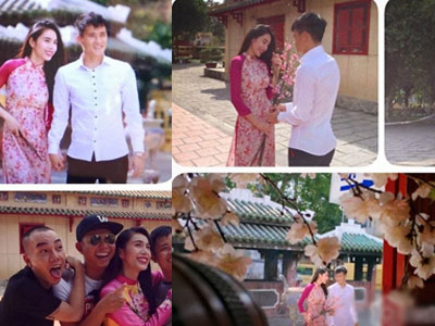 Công Vinh và Thủy Tiên đẹp mơ màng trong hậu trường ảnh Tết
