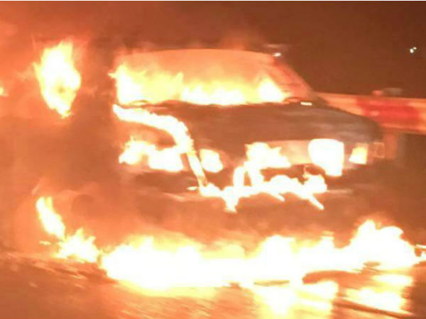 Đang lưu thông trên đường cao tốc một chiếc ô tô bất ngờ bị bó phanh rồi bốc cháy ngùn ngụt.
