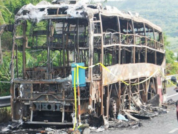 Tài xế phát hiện lửa bốc lên ở đầu xe nên cùng hành khách thoát ra bên ngoài trước khi chiếc xe bốc cháy ngùn ngụt như ngọn đuốc và chỉ còn trơ khung.