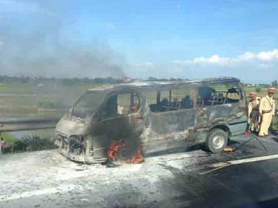 Ô tô khách 16 chỗ đang lưu thông trên trên cao tốc Pháp Vân - Cầu Giẽ bỗng bốc cháy phừng phừng. Thấy vậy, tài xế đã tấp xe vào lề đường và hô hoán hành khách ở trên xe đạp cửa thoát ra ngoài.