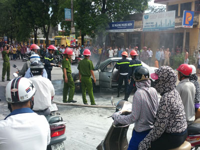 Hà Nội: Ô tô cháy phừng phừng, hành khách đạp cửa thoát thân