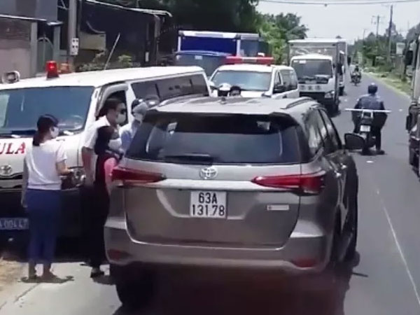 Bức xúc tài xế ôtô chạy lấn làn, ép xe cứu thương vào lề đường