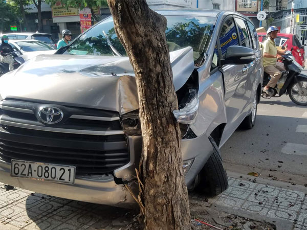 Ô tô nổ lốp, lao sang đường ngược chiều tông văng tài xế GrabBike ở Sài Gòn