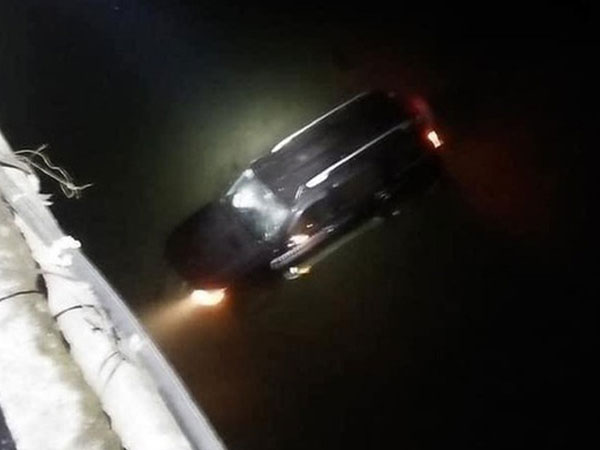 Ô tô đâm hỏng lan can cầu rơi xuống sông, một gia đình may mắn thoát chết