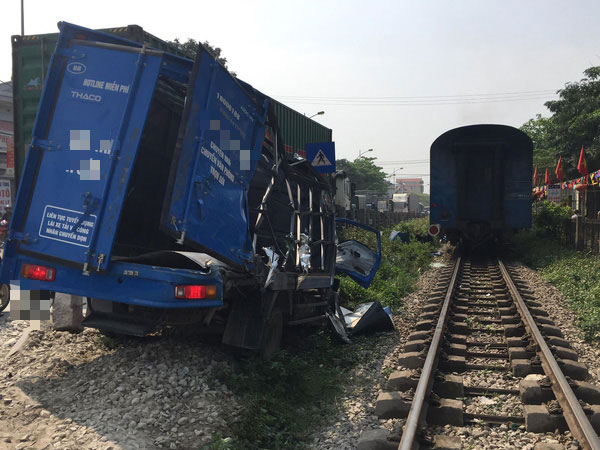 Băng ngang qua đường ngang dân sinh tại Thường Tín (Hà Nội), ôtô tải không quan sát đã bị tàu SE5 Bắc Nam đâm văng xa.