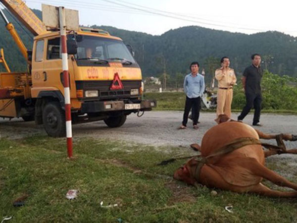 Con bò nặng khoảng 80 kg bị ôtô tông chết tại chỗ trên quốc lộ ở Hà Tĩnh. Nhà chức trách thông báo nhưng chủ gia súc không dám nhận vì sợ phải đền bù hư hỏng phương tiện.