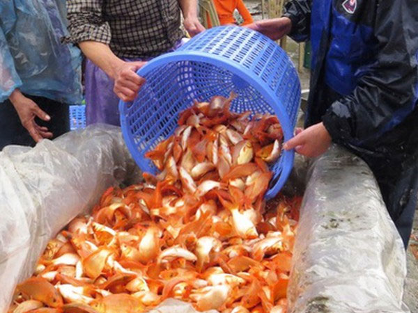 Cứ đến cận ngày 23 tháng Chạp, làng nuôi cá chép đỏ nổi tiếng ở Phú Thọ lại tất bật thu hoạch phương tiện chở ông Công, ông Táo về chầu trời.