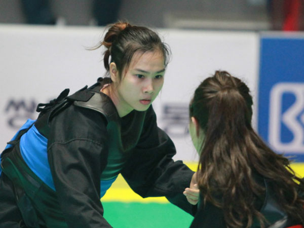 Trên con đường tiến vào trận chung kết hạng 50 đến 55kg nữ, Trần Thị Thêm đã hạ gục hàng loạt người đẹp pencak silat.