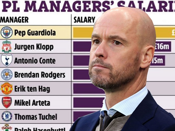 Ten Hag nhận lương chỉ bằng một nửa so với Pep