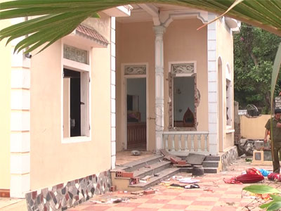 Trang 1Mâu thuẫn trong làm ăn, thanh niên lái máy xúc phá sập 2 căn nhà, gây mất điện diện rộng