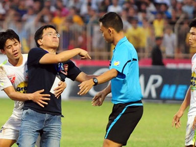 Trưởng đoàn HAGL "hùng hục" chạy vào sân phản ứng trọng tài