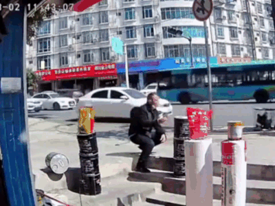 Clip: Phản xạ cực nhanh, người đàn ông thoát chết trước đầu xe tải