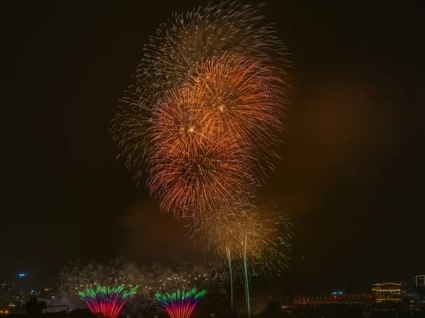 Đúng 23h45 đêm 31/12/2025, pháo hoa tại Hà Nội đồng loạt khai hỏa, sớm hơn 15 phút so với thời khắc 0h như thông lệ hằng năm.