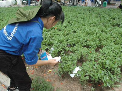 Kết thúc môn thi Lịch sử sáng 4/7, phao thi rải trắng sân trường Đại học Thủy lợi, sinh viên tình nguyện toát mồ hôi thu gom.