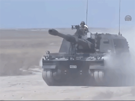 Ngay sau tuyên bố của tổng thống Thổ Nhĩ Kỳ sẽ can thiệp vào chiến trường Syria, người ta thấy xuất hiện tại biên giới là những khẩu pháo tự hành T-155 Fırtına (K9 Thunder) và xe tăng Leopard 2A4 của lục quân Thổ Nhĩ Kỳ sẵn sàng tràn sang biên giới Syria.