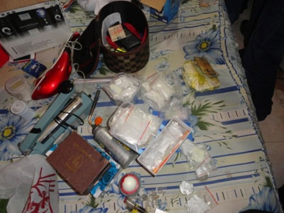 Kiểm tra nơi ở của "bà trùm", công an thu giữ gần 1 kg ma túy đá cùng nhiều dụng cụ phân chia. Đây là số ma túy lớn nhất phát hiện tại Trà Vinh.