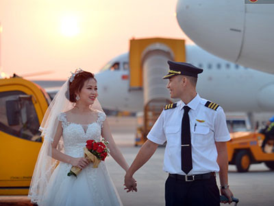 Sau 10 năm quen biết và 6 năm yêu nhau, cặp đôi phi công người Việt đã quyết định thực hiện bộ ảnh cưới trên chính sân bay và khoang lái máy bay để ghi lại khoảnh khắc đẹp về câu chuyện tình yêu của mình.