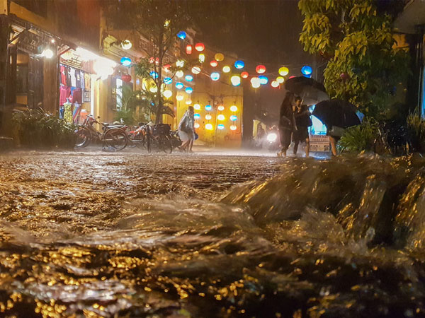 Thủy điện xả lũ, phố cổ Hội An lung linh ánh đèn bị ngập trong nước