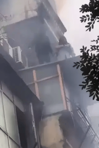 Trang 1Video: Thót tim khoảnh khắc người phụ nữ trượt chân rơi từ mái tôn trong vụ cháy lớn phố Hàng Mã