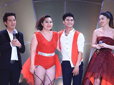 Hôn thê của đạo diễn Victor Vũ nhiều lần bóng gió về chiều cao khiêm tốn của nam diễn viên "49 ngày" nhưng anh nhanh nhẹn "chuyền bóng" sang Đàm Vĩnh Hưng.
