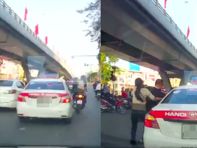 Người đàn ông không đội mũ bảo hiểm điều khiển chiếc xe SH có ý định tạt đầu rẽ trái nhưng bất thành, ngay sau đó người này liền phóng lên chặn đầu taxi và đánh tài xế.