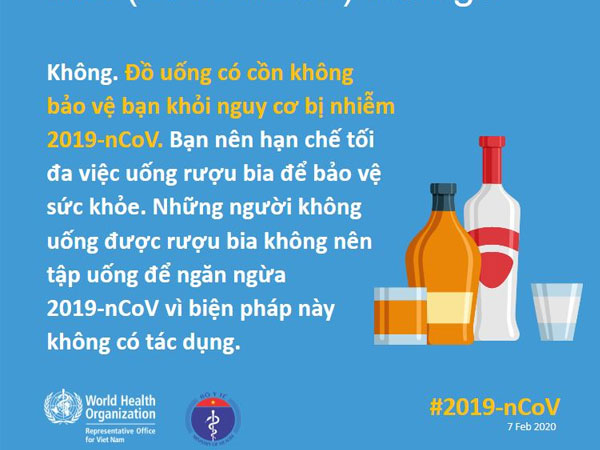 Theo Tổ chức y tế thế giới, việc uống rượu bia không bảo vệ bản thân khỏi bị nhiễm virus corona.