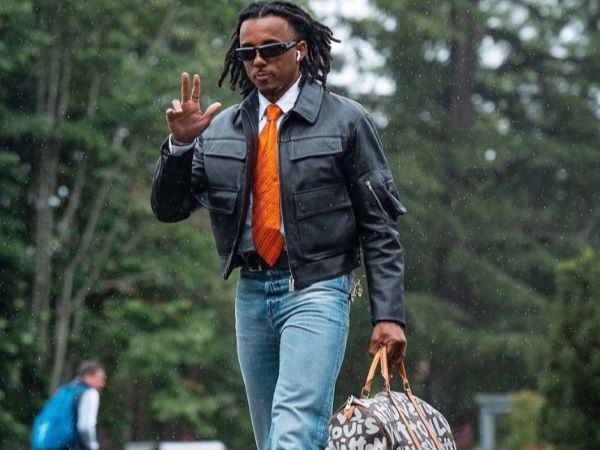 Trung vệ Pháp Jules Koundé được đánh giá có phong cách táo bạo nhất làng túc cầu, lúc đi giày gót nữ, khi đeo thú nhồi bông.