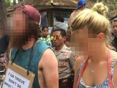 Du khách bị diễu phố vì ăn cắp ở Indonesia