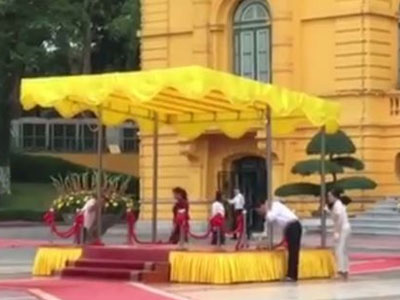 Các hoạt động chuẩn bị đang gấp rút được thực hiện trước khi lễ đón chính thức Tổng thống Obama theo nghi lễ nhà nước diễn ra tại Phủ Chủ tịch.