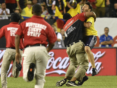Trước khi trận bán kết 2 của Copa America 2016 kết thúc, không dưới 3 CĐV quá khích đã “đột nhập” vào sân khiến nhân viên an ninh vất vả truy đuổi.