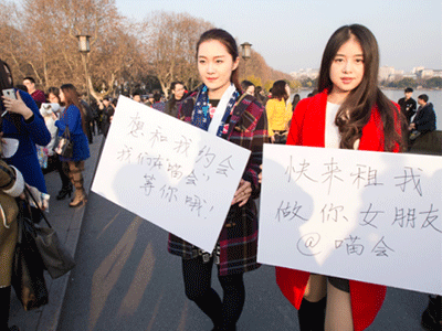 Hai nữ sinh xinh đẹp của trường Đại học Hàng Châu (Trung Quốc) quyết định mở dịch vụ cho thuê... chính bản thân họ với đối tượng khách hàng là những chàng trai có nhu cầu thuê bạn gái, người yêu giả để đối phó với gia đình trong dịp lễ tết.