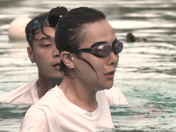 Vì từng suýt chết đuối nên Phương Oanh tỏ ra sợ hãi trước thử thách dưới nước trong gameshow Mỹ nhân hành động.