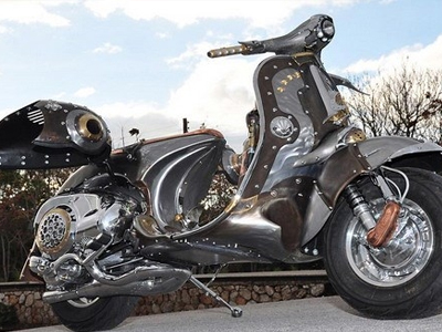 Chiếc Vespa nổi bật với bộ dàn áo lằm bằng chất liệu thép cứng không gỉ không chỉ thu hút sự chú ý của dân độ xe trên toàn thế giới mà nó còn là một tác phẩm điêu khắc nghệ thuật độc nhất trên toàn thế giới hơn là một chiếc vespa hiện hành.