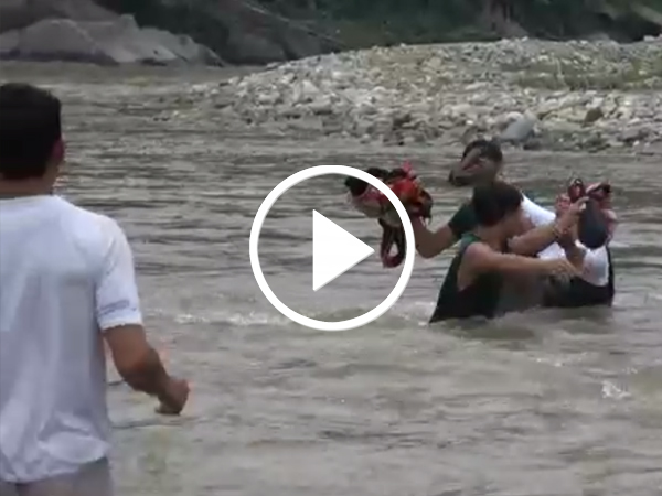 Video: Bị cô lập, người dân Sủng Hoảng liều mình qua dòng nước lũ