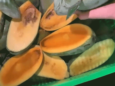 Nhìn cả thùng xoài to bị đổ đi thế này đúng là tiếc thật.