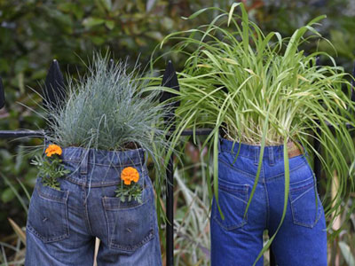 Chủ nhà tinh nghịch trồng cây trong quần bò