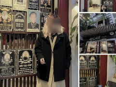 Xôn xao hình ảnh một quán cà phê ở Hà Nội dùng bia mộ để làm decor